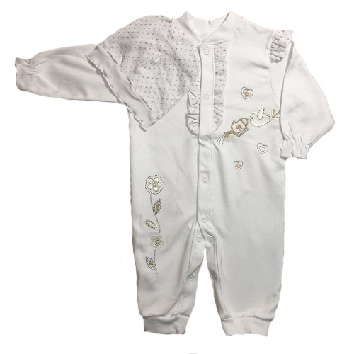Комплект состоит из 100% хлопка, комбинезон с открытыми ручками и ножками, впереди по всей длине на кнопочках.