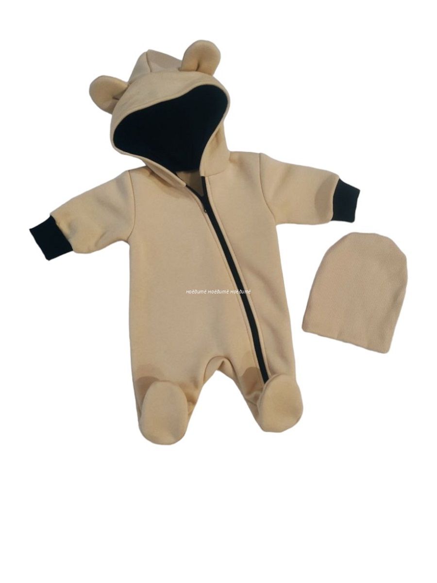"МоёДитё" комплект: комбинезон + шапочка КС161 бежевый "Магнолия" ? Ельце
